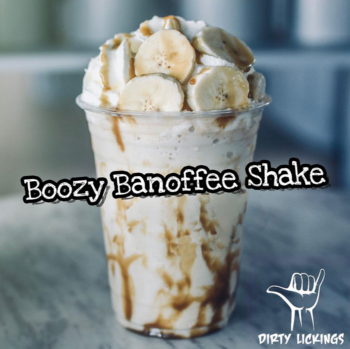 - Pour in banana shake and top with a dollop of cream, a drizzle of caramel sauce and some sliced banana.