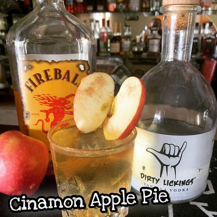 Dip the rim or an old fashioned glass in honey and coat with cinnamon sugar. Combine vodka and whiskey with ice and shake. Add Apple cider to the shaker and pour into glass. Use Apple slice to garnish.