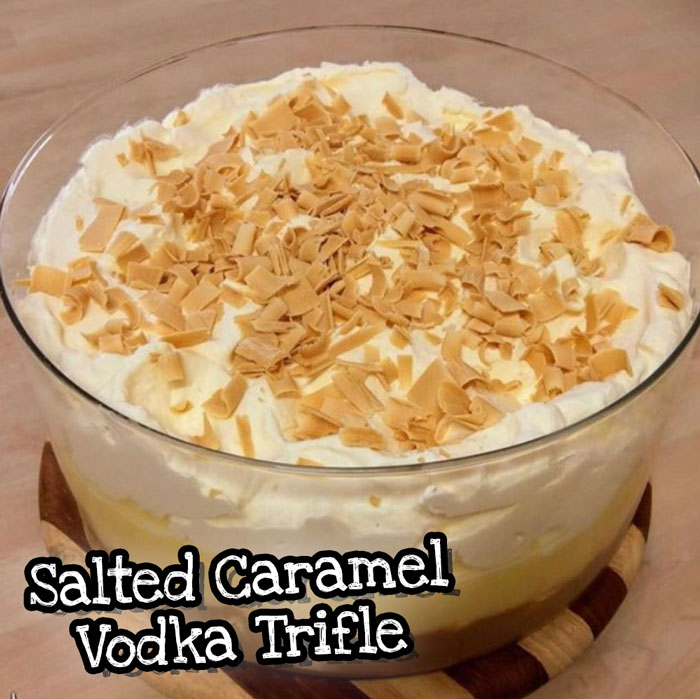- Make up pudding mix using 1300mls of full cream milk and 60mls of Dirty Licking Salted Caramel Vodka, follow instructions on packet.